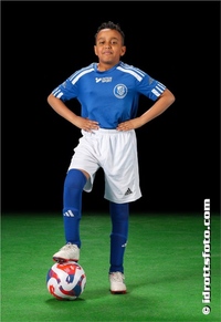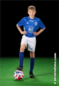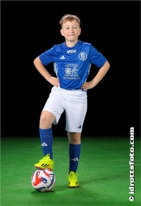 Medtag fylld vattenflaska, fotbollsskor och benskydd. Vita shorts och blå strumpor.