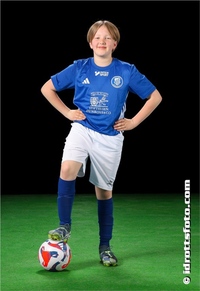 Medtag fylld vattenflaska, fotbollsskor och benskydd. Vita shorts och blå strumpor.