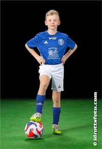 Medtag fylld vattenflaska, fotbollsskor och benskydd. Vita shorts och blå strumpor.